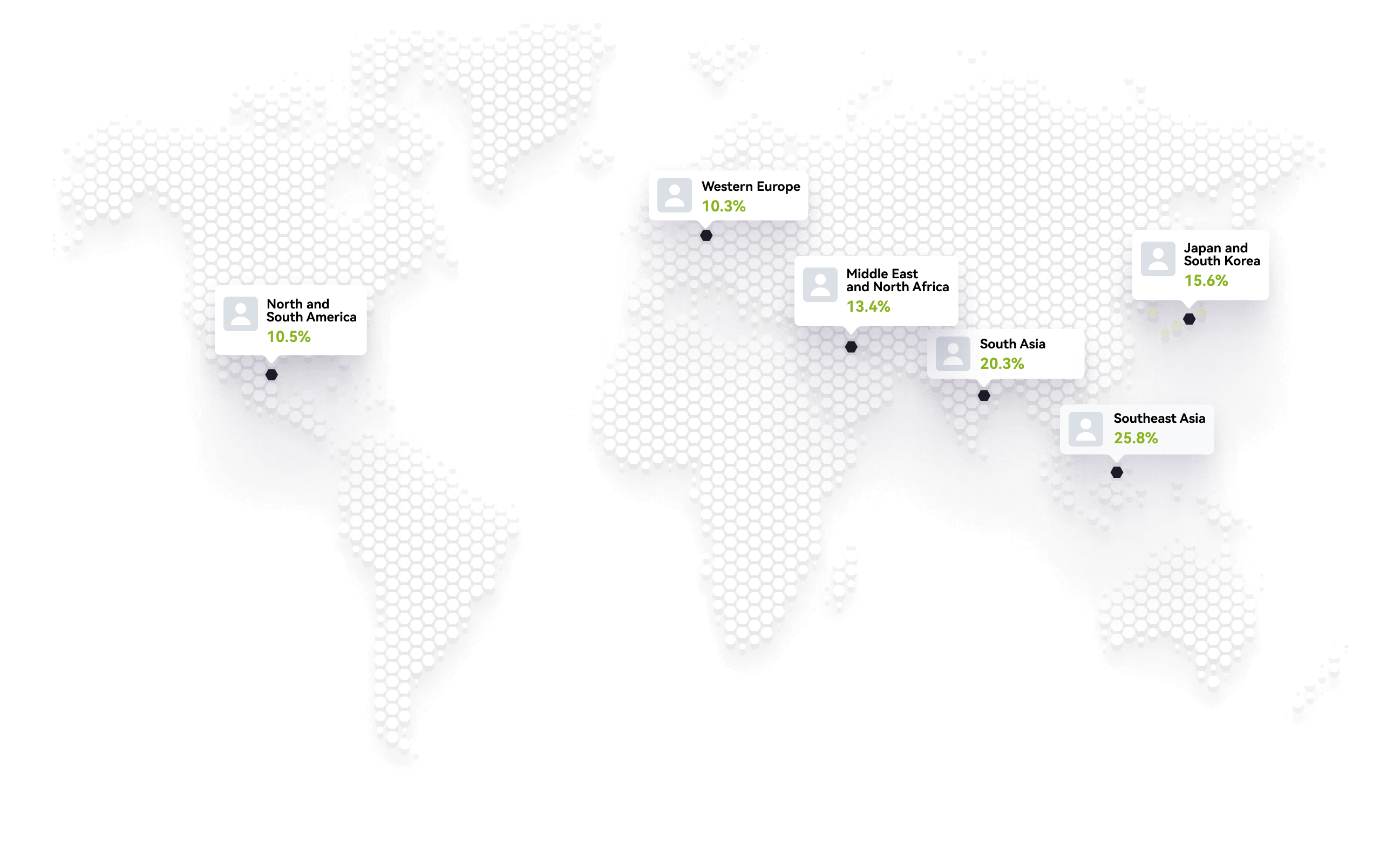 Global users are mainly from East Asia, South East Asia, Middle East, West Europe, North America, and etc.